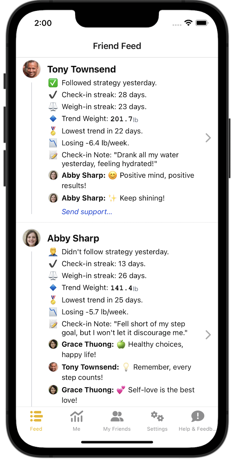 This app is an experiment. Sharing one's weight graph requires vulnerability and accountability, and it's a new behavior that people can find to be uncomfortable at first. But it has been working for us and our friends & family, so we couldn't resist sharing it more widely.